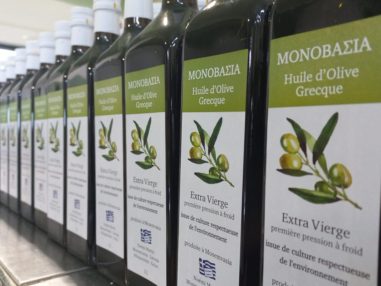 Après un temps d'entreposage d'environ un mois durant lequel les résidus se déposent au fond des réservoirs, l'huile est transportée dans de nouvelles cuves jusqu'à l'usine de conditionnement. Elle est filtrée, ce qui permet de réduire encore les résidus qui se déposent peu à peu au fond des récipients et ne diminue en rien ses propriétés. Puis elle est mise en bouteille. Différents types d’emballages peuvent être utilisés, les plus recommandés étant les récipients en verre foncé, en métal et les sacs dans des cartons (type bag in box) pour éviter l’exposition à la lumière et préserver la fraîcheur de l’huile. Les récipients sont ensuite conditionnés avec soin dans des cartons puis placés sur des palettes. Un transporteur local les amène en camion jusqu'à Athènes, puis un transporteur international prend le relais pour les acheminer jusqu'en Suisse, prêts à être livrés.